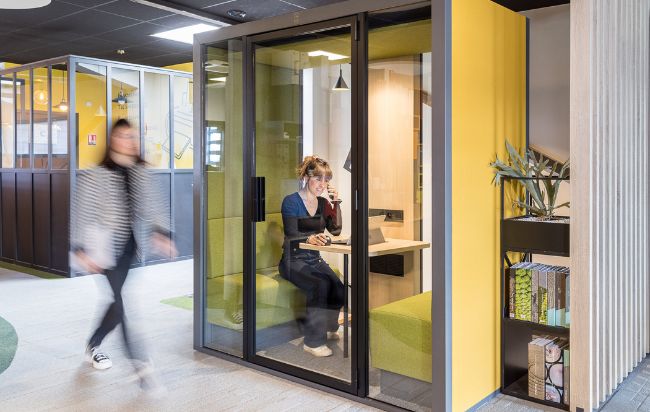 Pour un isolement optimal, la cabine acoustique, ou bulle de concentration, est un incontournable des espaces de travail ouverts. Disponible en plusieurs formats, elle s’adapte aux besoins de vos collaborateurs. Une cabine individuelle est idéale pour passer un appel ou se concentrer sur une tâche importante. Tandis que la cabine acoustique XXL offre une salle de réunion supplémentaire parfaitement isolé pour vos travaux en équipe.