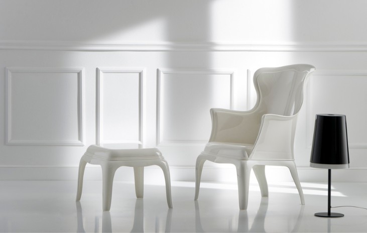 Le fauteuil Pasha de Pedrali avec son ottoman s’incorpore idéalement dans les espaces de convivialités aussi bien en intérieur qu’en extérieur grâce à son revêtement en polycarbonate résistant.