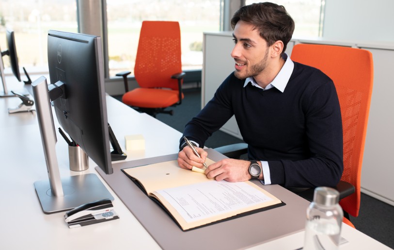 Disponibles en vert, rouge et orange, les fauteuils de bureau Joyceis3 217 d’Interstuhl offrent un confort ergonomique et une touche de couleur à vos espaces de travail.