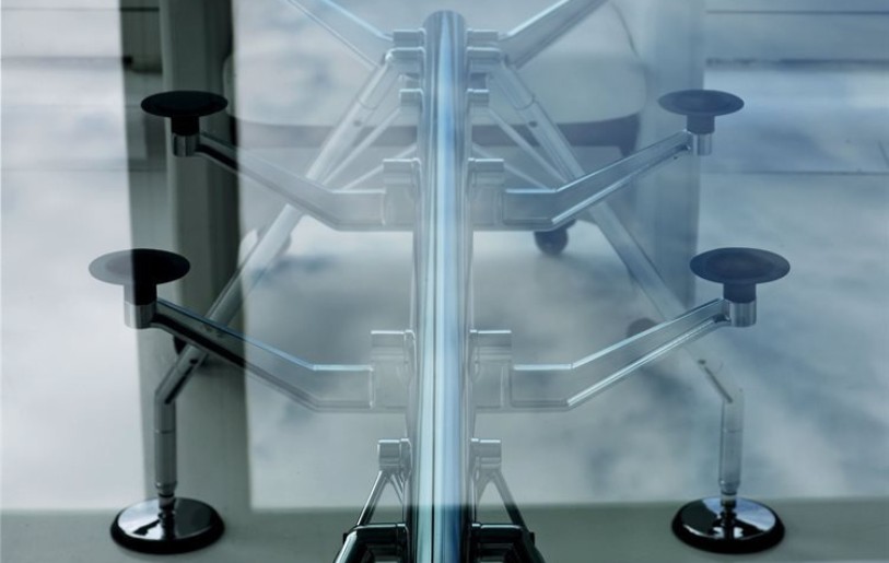 La table de réunion Nomos signée Tecno est un symbole de design et de modernité. Sa structure chromée et son plateau en verre trempé en font une pièce élégante et fonctionnelle pour vos réunions.